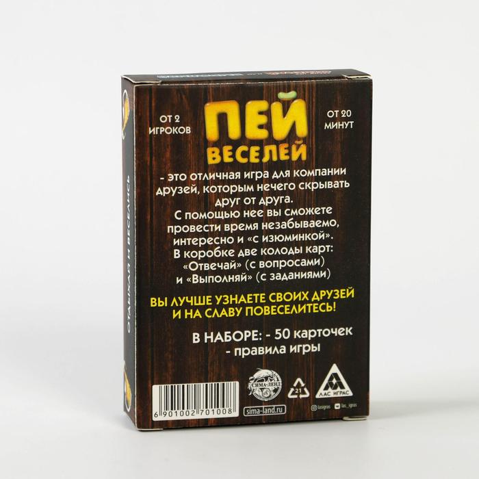 Купить игра для компании "пей веселей" 50 карт от 180 руб. с доставкой до пункта выдачи в Клинцах. Интернет магазин ДекаМаркет. Оплата при получении.